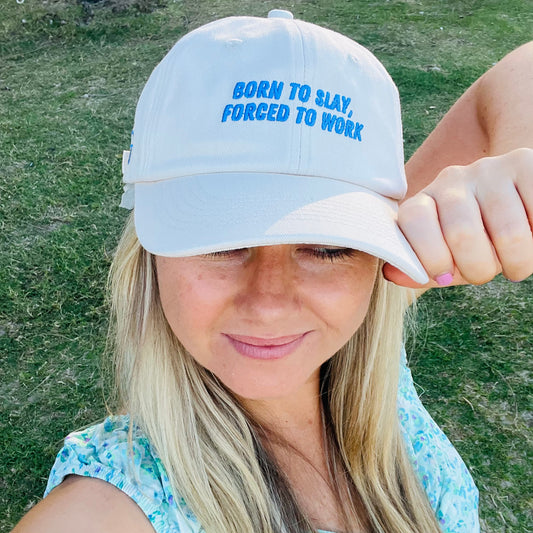 "Born to slay, forced to work" Adjustable Unisex Baseball Cap (available in 5 colours)