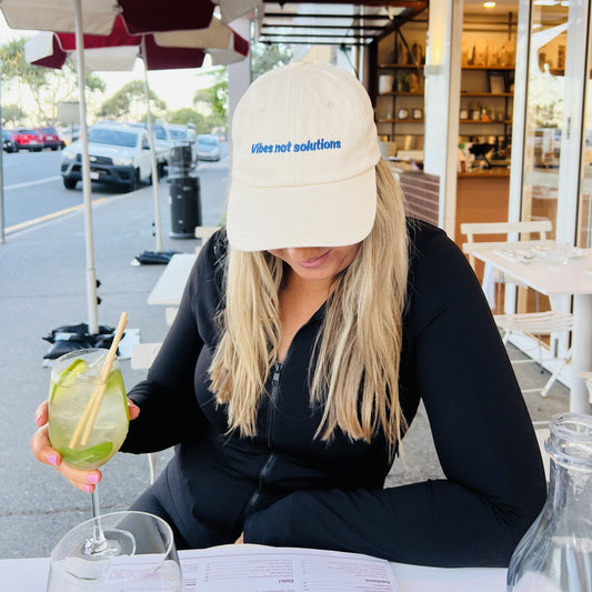 "Vibes not solutions" Adjustable Unisex Baseball Cap (available in 5 colours)